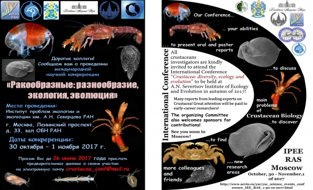 ИНСТИТУТ ПРОБЛЕМ ЭКОЛОГИИ И ЭВОЛЮЦИИ им. А.Н. Северцова РАН СОВЕТ МОЛОДЫХ УЧЕНЫХ ИПЭЭ РАН приглашает принять участие в МЕЖДУНАРОДНОЙ КОНФЕРЕНЦИИ «Ракообразные: разнообразие, экология, эволюция»